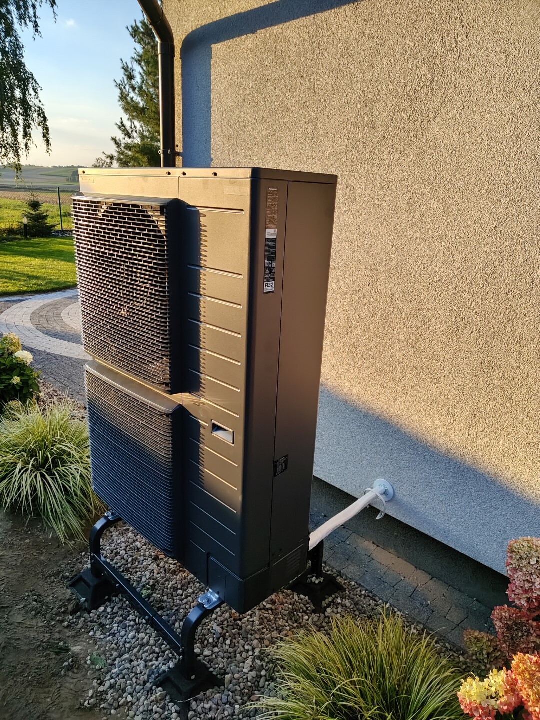 instalację powietrznej pompy ciepła Panasonic – jednostki zewnętrznej oraz wewnętrznej,